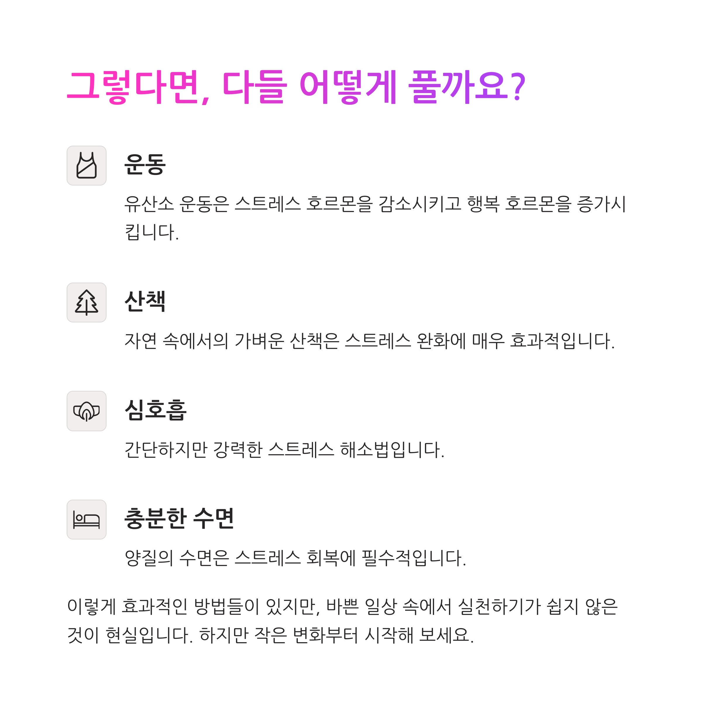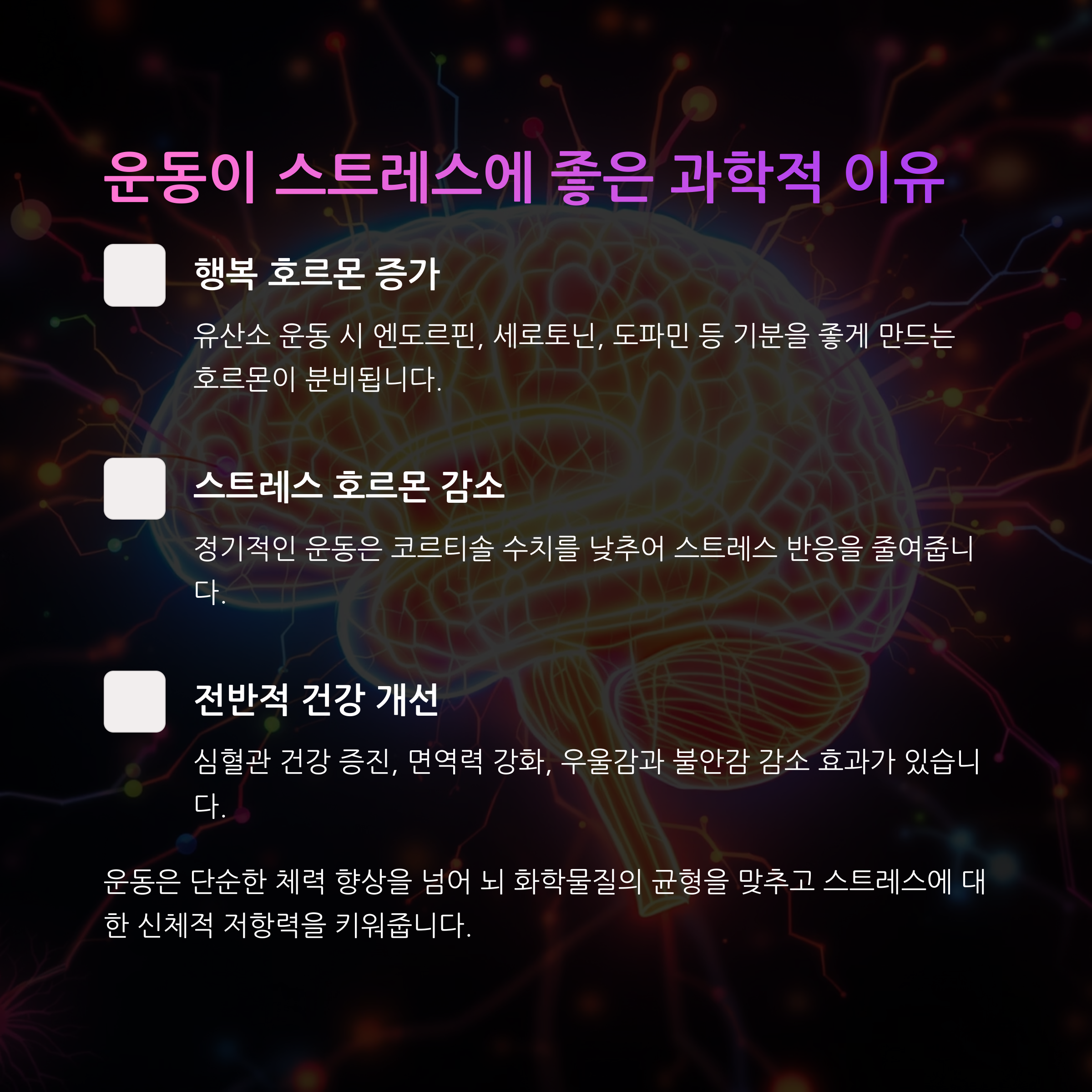 #스트레스해소 #운동효과 #심호흡운동 #마음건강 #행복호르몬 #생활습관개선