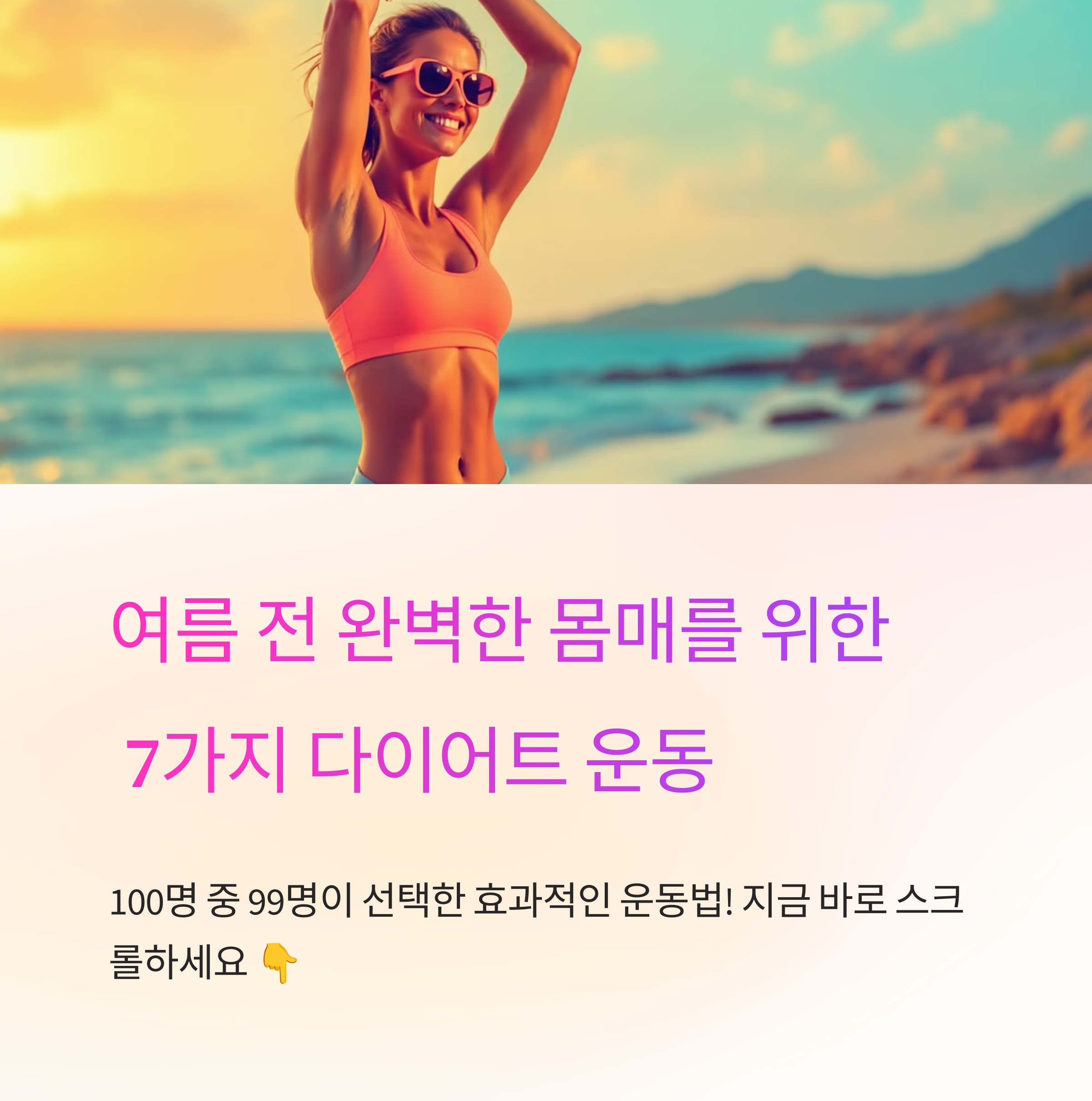 이 글은 이런 고민을 가진 분들을 위한 실전 가이드입니다. 지금부터 소개할 7가지 여름 다이어트 운동은 과학적으로 효과가 입증된 방법으로, 운동이 익숙하지 않은 사람도 쉽고 안전하게 시작할 수 있습니다.