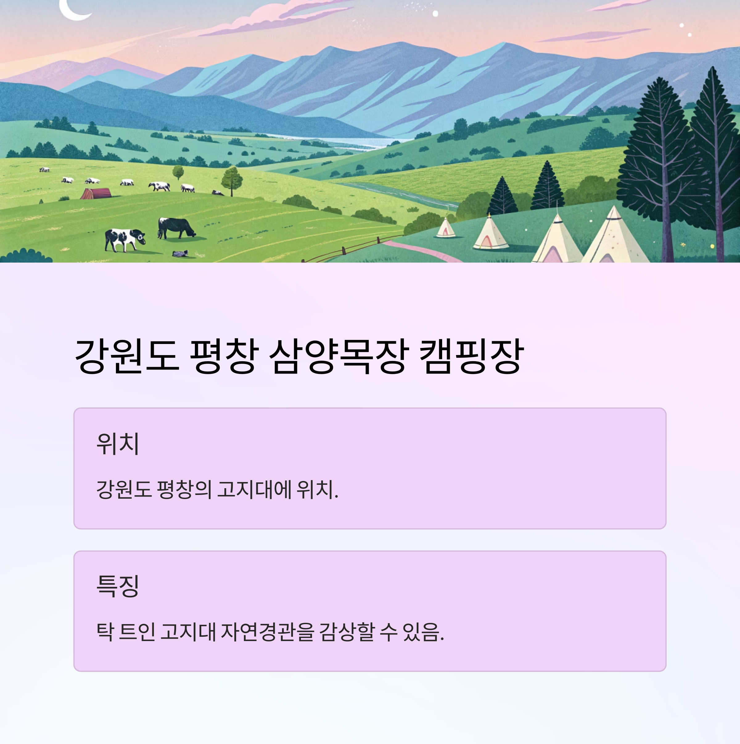 2. 강원도 평창 삼양목장 캠핑장 – 탁 트인 고지대 자연경관