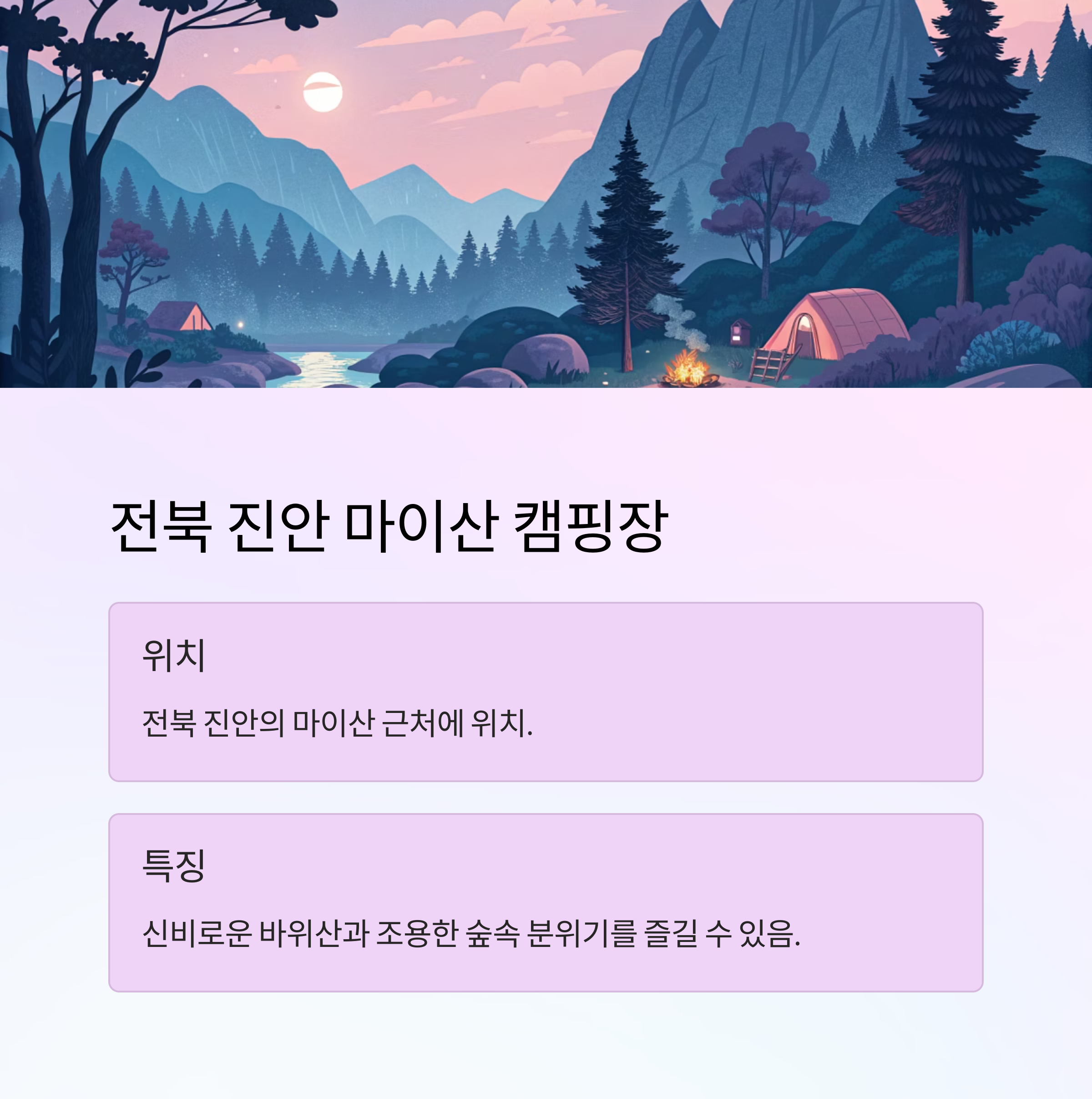 3. 전북 진안 마이산 캠핑장 – 신비로운 바위산과 조용한 숲속 분위기